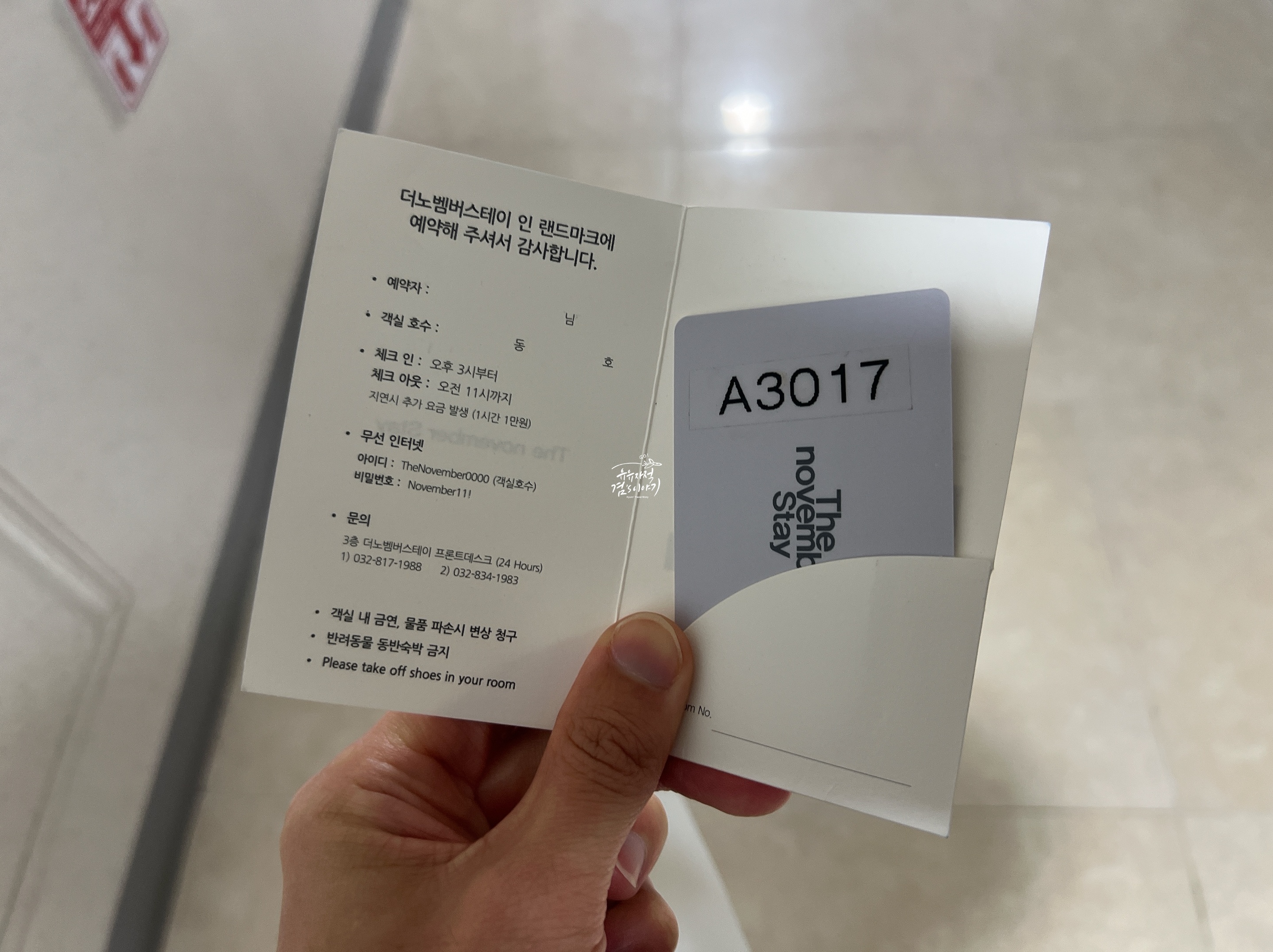 최근에 머물렀던 송도의 가성비 좋은 호텔 노벰버 스테이 인 랜드마크라고 송도달빛축제공원역 인근에 있는 호텔입니다. 지하주차장에 주차를 하고 3층으로 올라가면 로비가 있는데 데스크 직원에게 예약번호를 말하면 방키와 안내를 해주십니다.